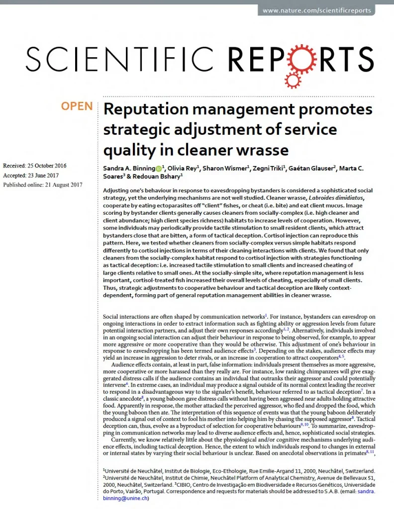 While the relationship is mutualistic – the cleaner fish gets food and the client gets health benefits from being cleaned – cleaner wrasse also bite by removing fish mucus and scales! This is considered cheating.