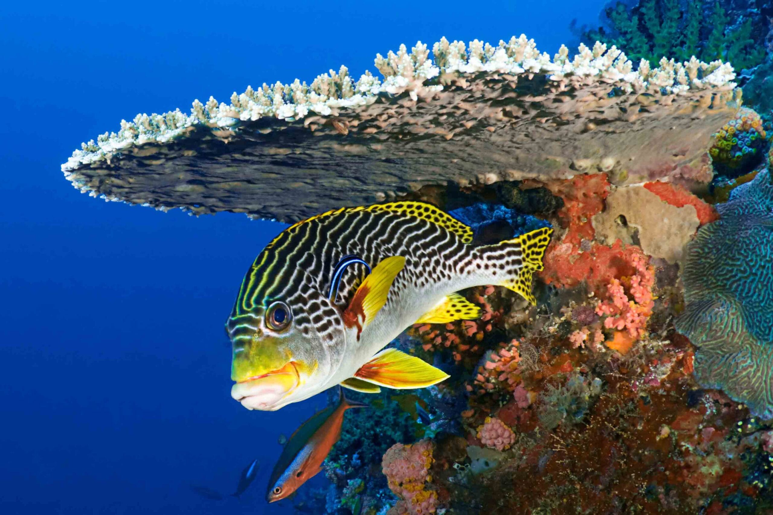 of coral reefs and meet the bluestreak cleaner fish –