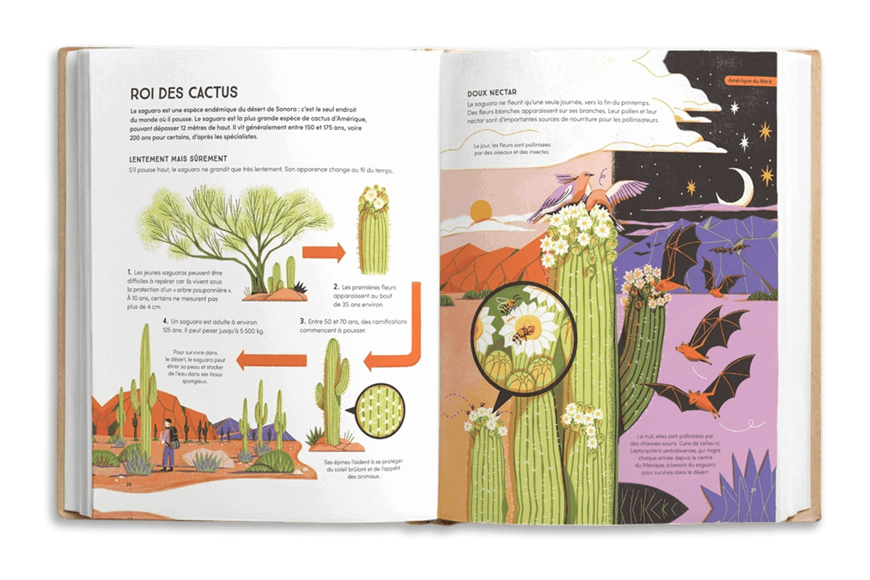 La nature en équilibre est la version française de “Wildlife in the Balance”. Ce livre présente 25 espèces clés du monde entier, des éléphants aux loups, des abeilles aux castors. Les espèces clés sont des animaux ou des plantes qui jouent unrôle très important dans leur environnement et qui ont un grand impact sur ce qui les entoure. Des écosystèmes entiers peuvent dépendre d’une seule espèce clé, elles agissent comme une colle qui maintient l’écosystème ensemble. Le livre parle desespèces clés des principaux milieux naturels (l’eau, les prairies, les forêts, les déserts et la toundra) et de tous les continents. Il donne aussi des informations sur la vie sauvage, les habitats etles pratiques modernes de conservation pour protéger ces espèces.